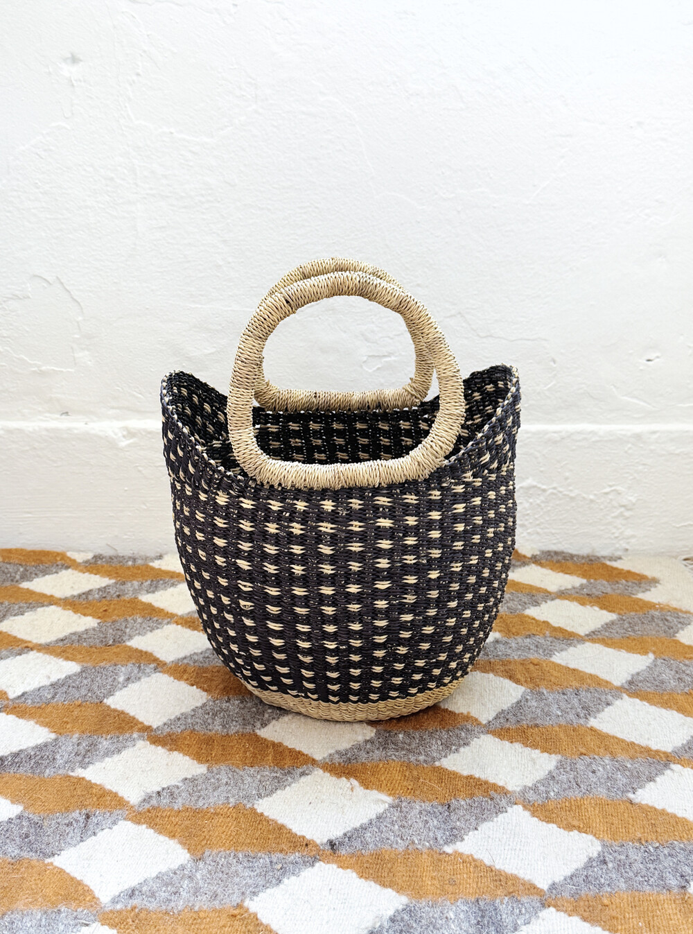 냐리가 블랙 체크 바구니