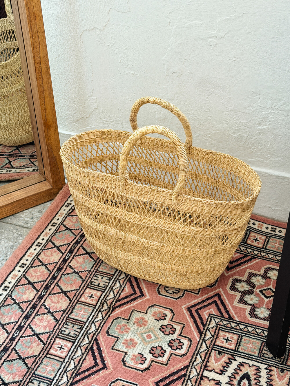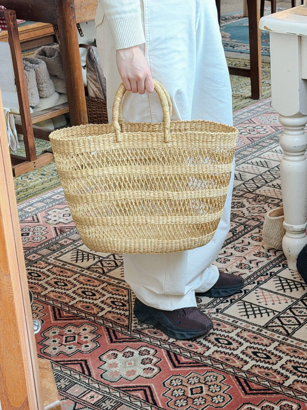 가볍고 통기성이 좋은 구조와 자연스러운 질감이 어우러져, 일상적인 외출이나 나들이에 편하게 사용하기 좋습니다.또한 공간에 두었을 때도 따뜻한 분위기를 더해주는 인테리어 바스켓으로 활용하기에도 좋은 아이템입니다.