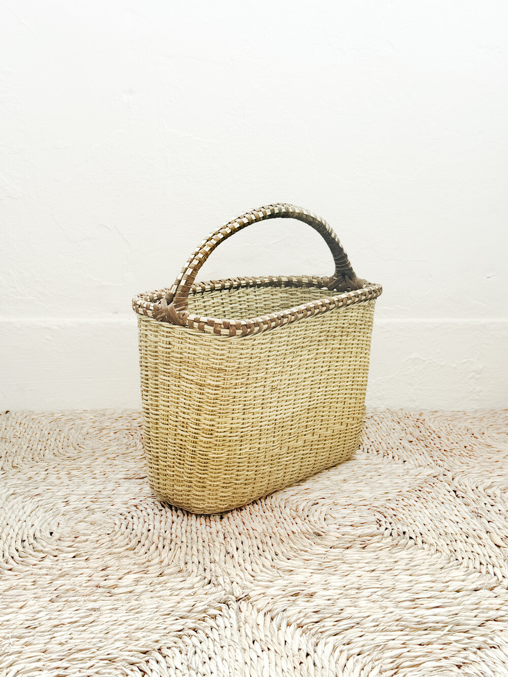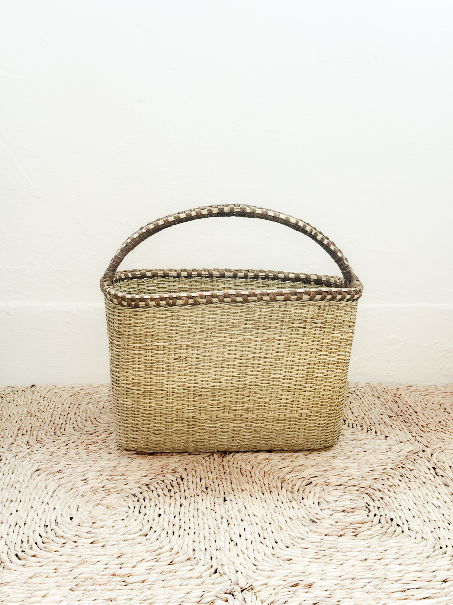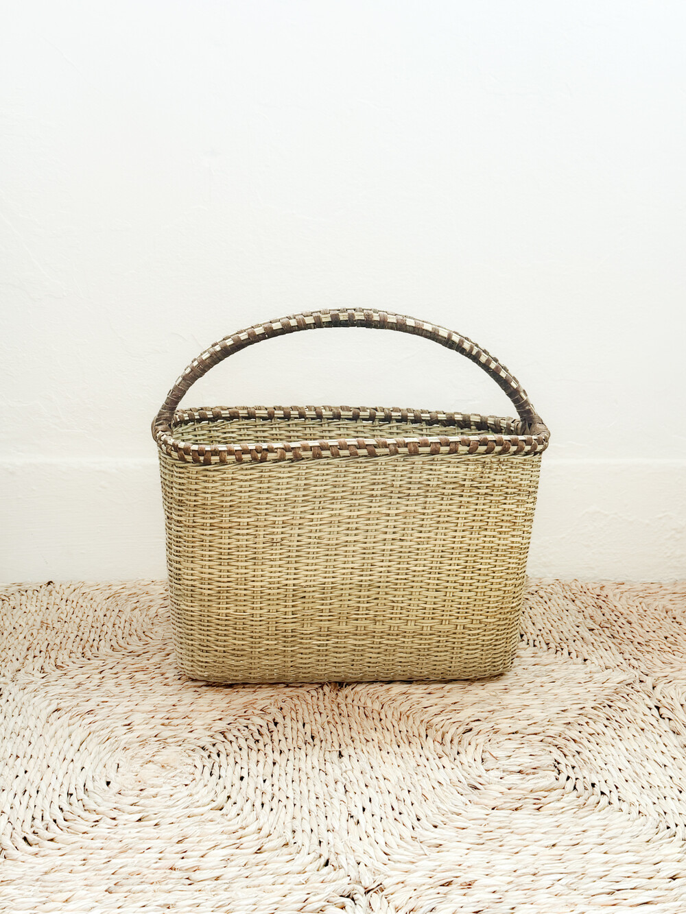 유연한 천연 소재 마라부스 팜(Marrabous Palm)이라 불리는 야자 잎을정성스럽게 엮어 만든 원 핸들 바스켓입니다.