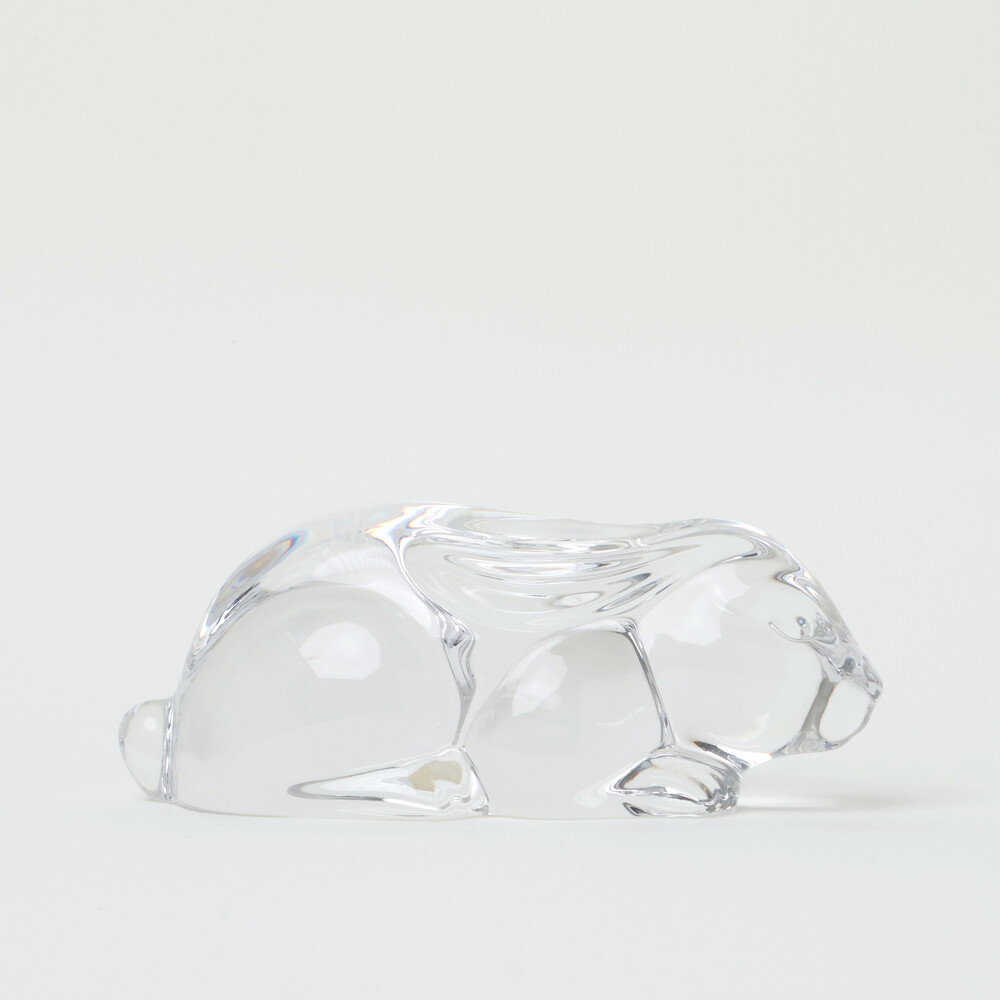 웅크리고 앉아있는 토끼 모양이 유니크한 크리스탈 문진 입니다.