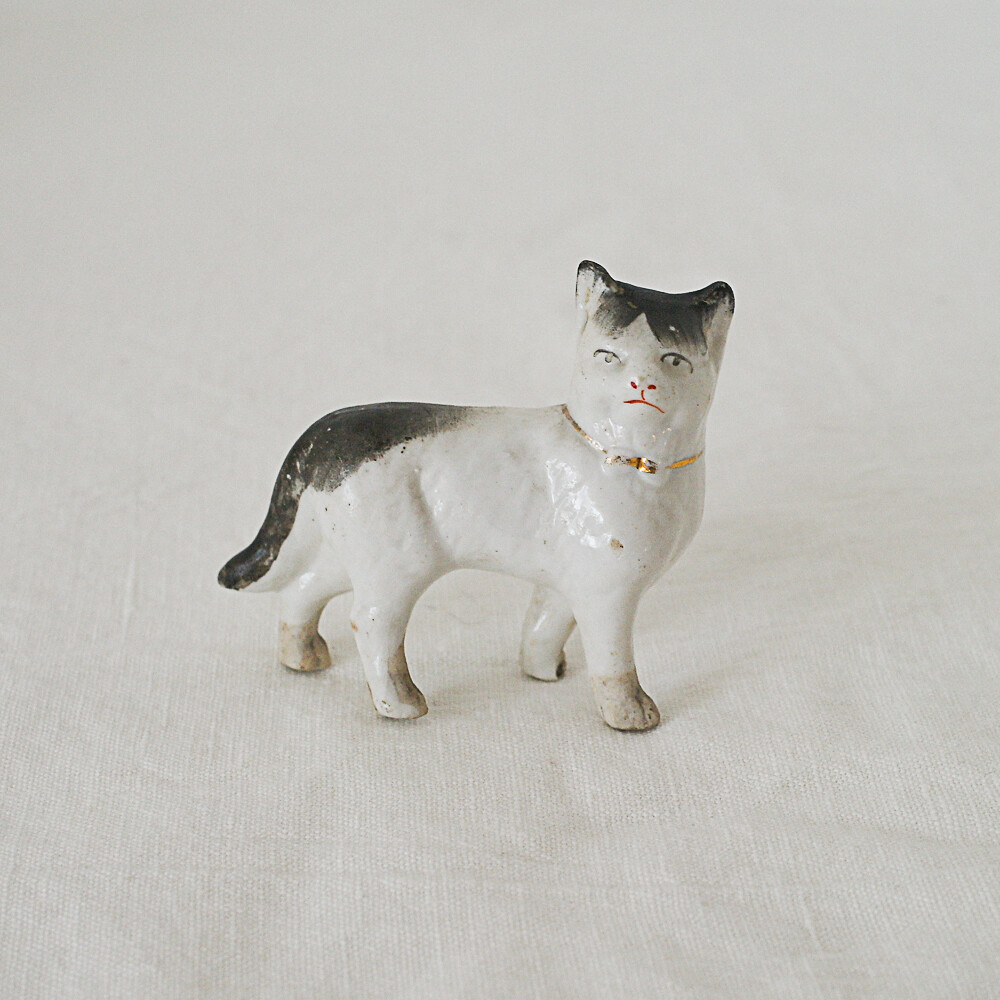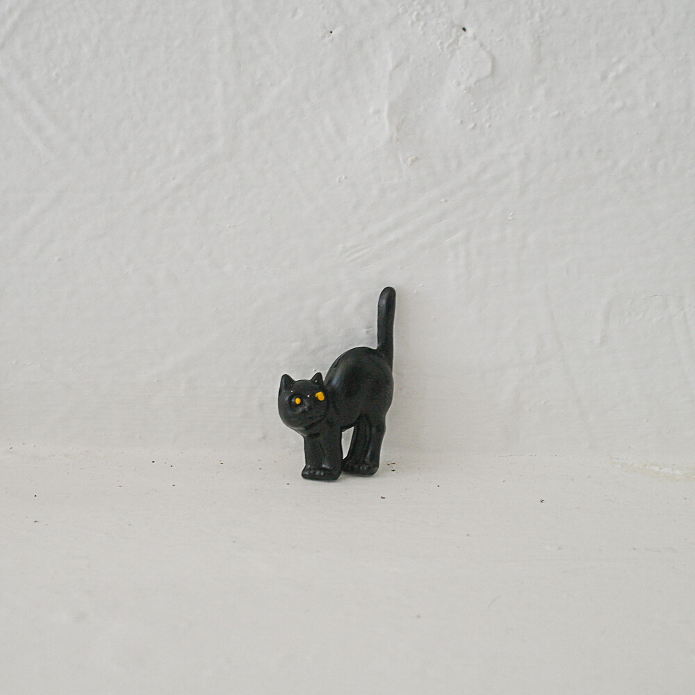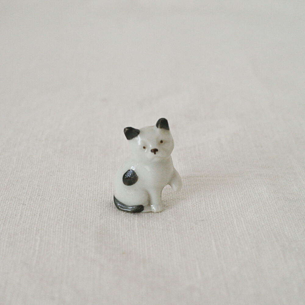 도자기와 플라스틱으로 만들어진 작은 고양이 오브제들입니다.