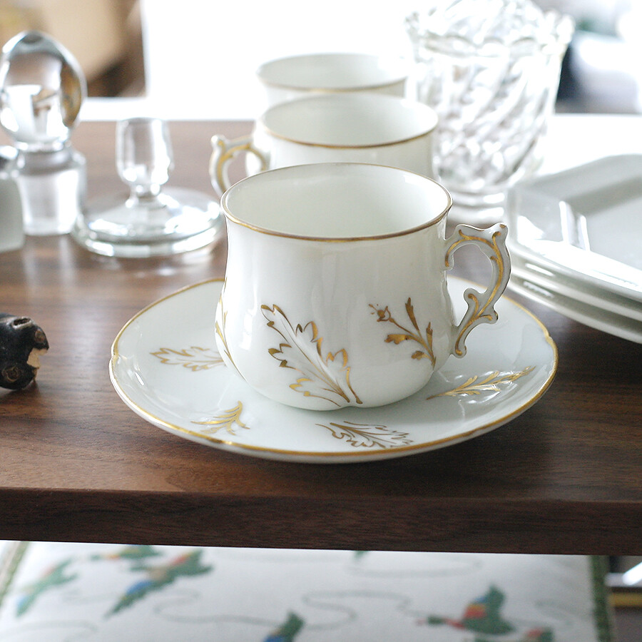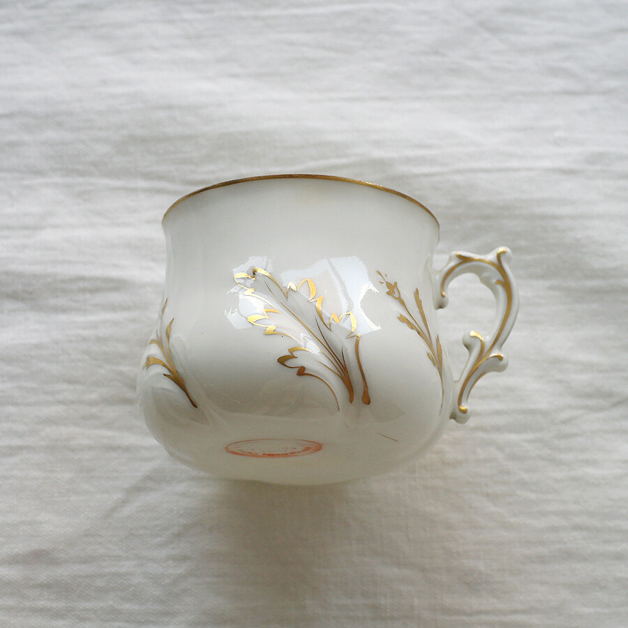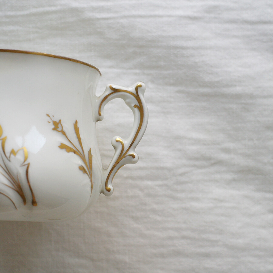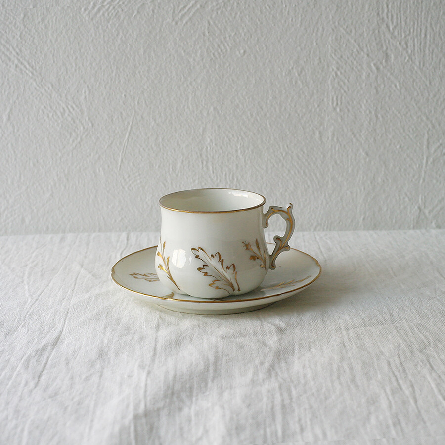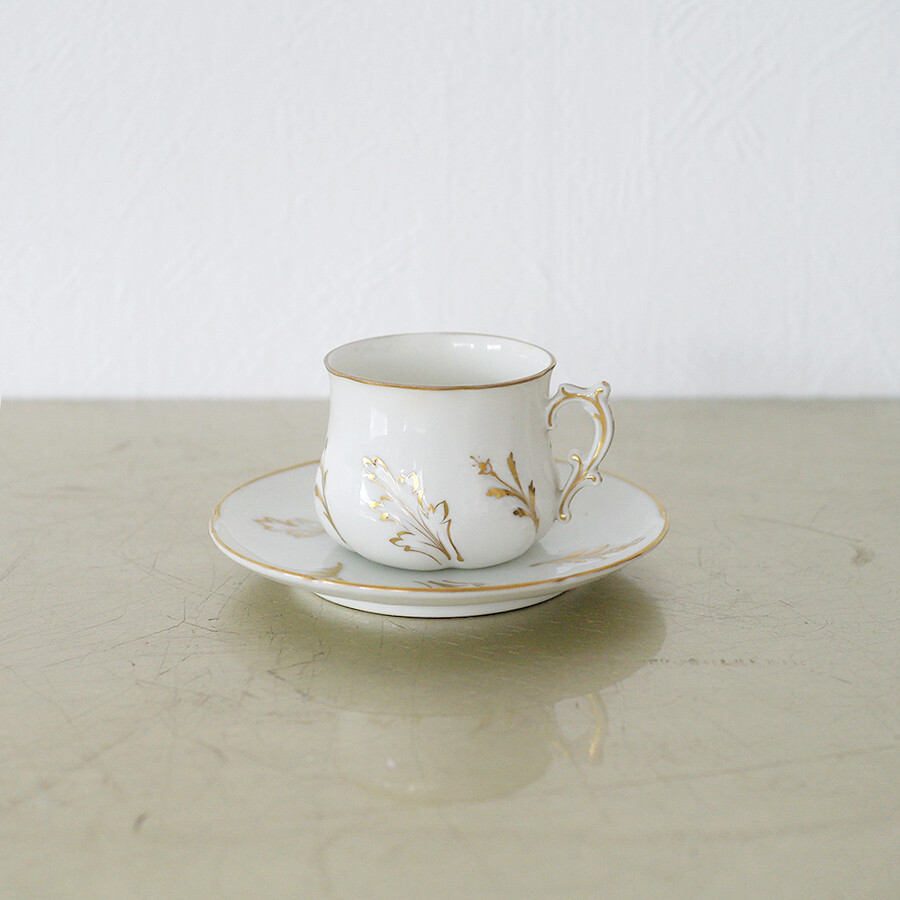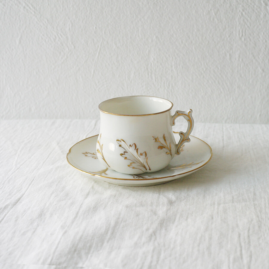 하얀 순백색의 자기와 풍요로움이 느껴지는 화려한 금색의 장식을 가진, 파리에서 판매되던 빈티지 컵입니다.