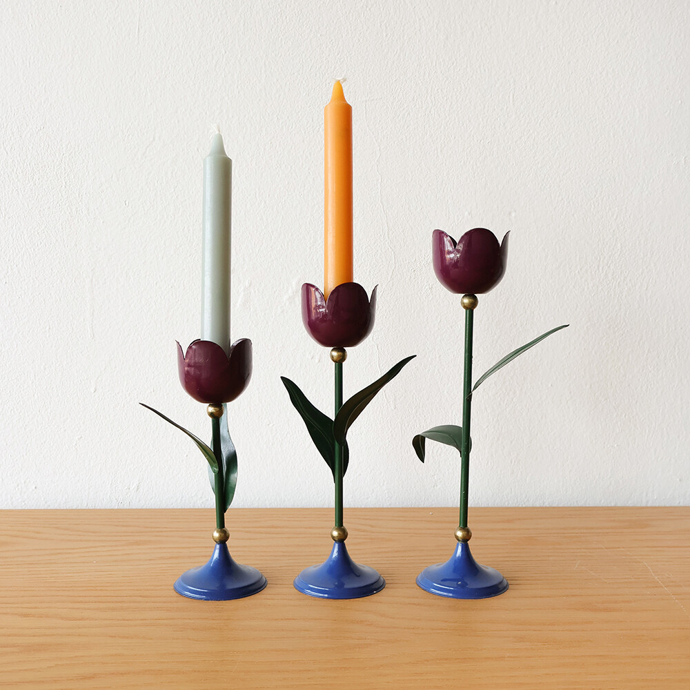 TULIP SHAPED METAL CANDLE HOLDERS X 3